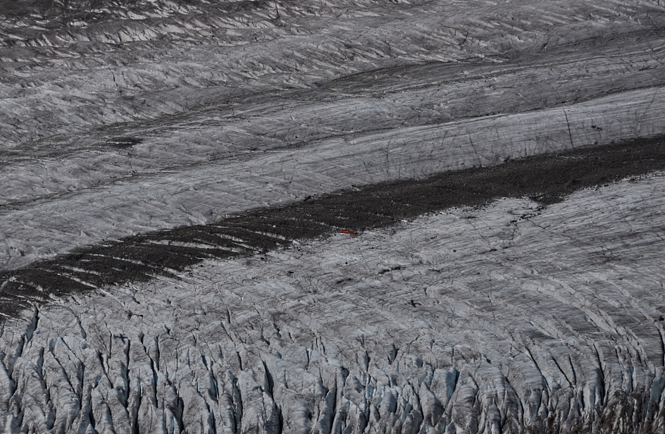 Vi invito a trovare l'aereo con la rispettiva ombra sull'immenso ghiacciaio dell'Aletsch