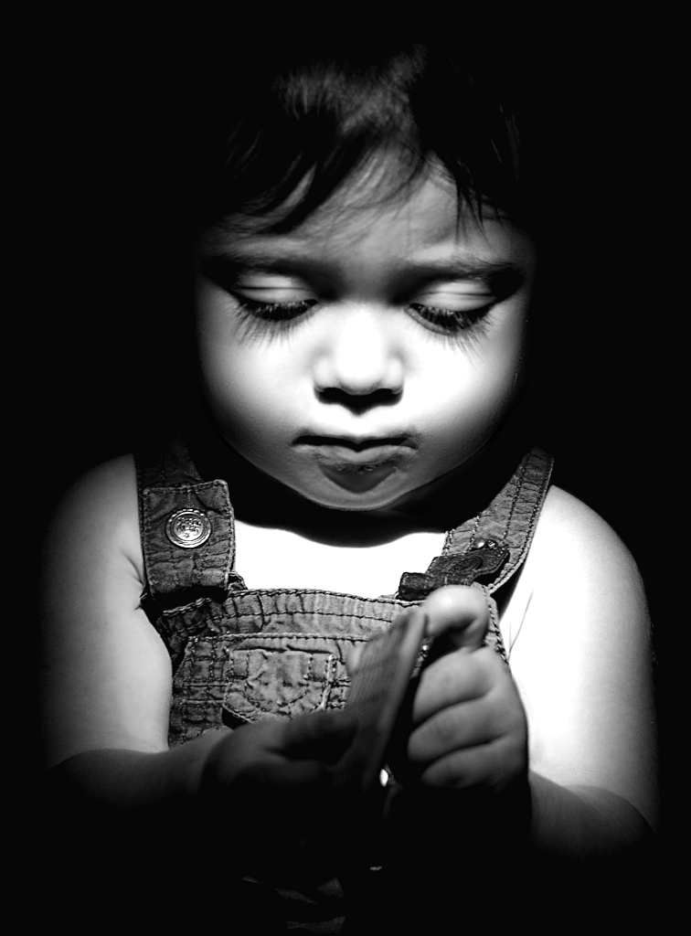 La versione colore non riporta zone sovraesposte, ma nella conversione in B/N ho volutamente aumentato il contrasto che di conseguenza ha determinato quella sovraesposizione visibile ad occhio sul setto nasale, vicino le guance, sul petto e sul braccio a destra. Naturalmente, con intento piacevole..