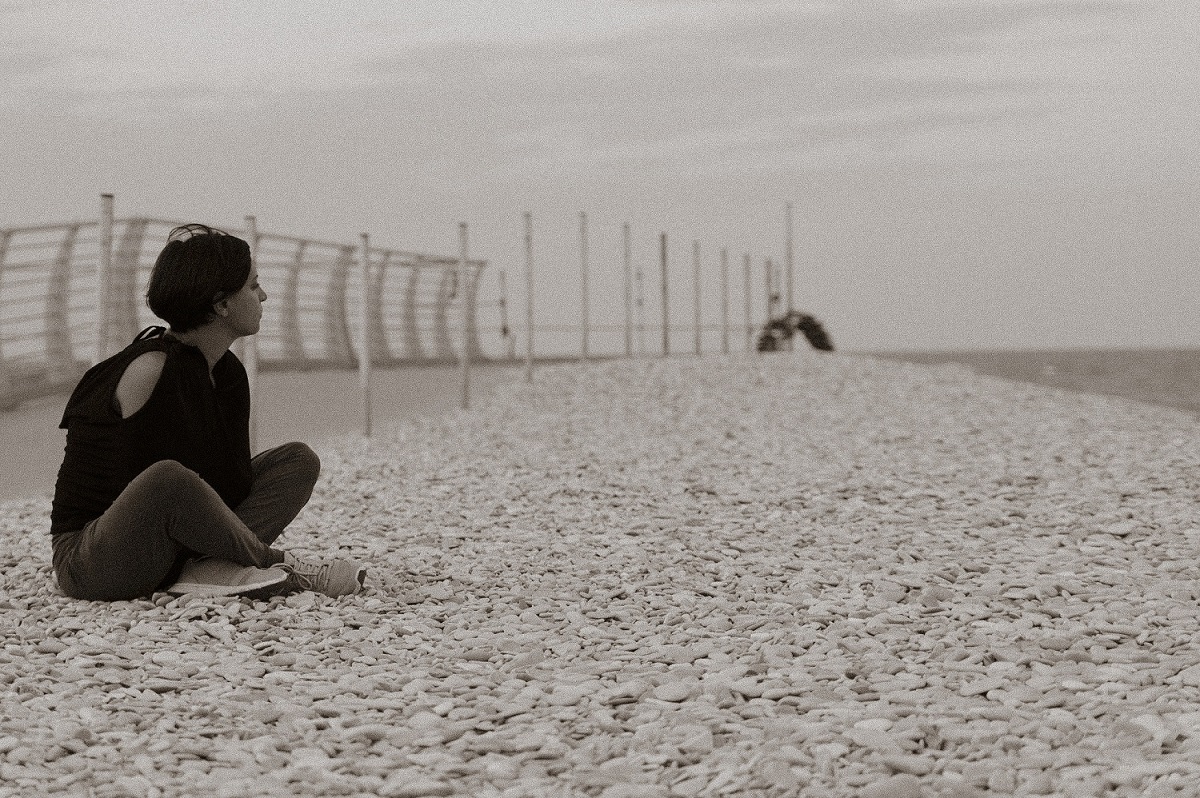La posa della ragazza mi piace molto, raccolta in se'. scruta l'infinito, o