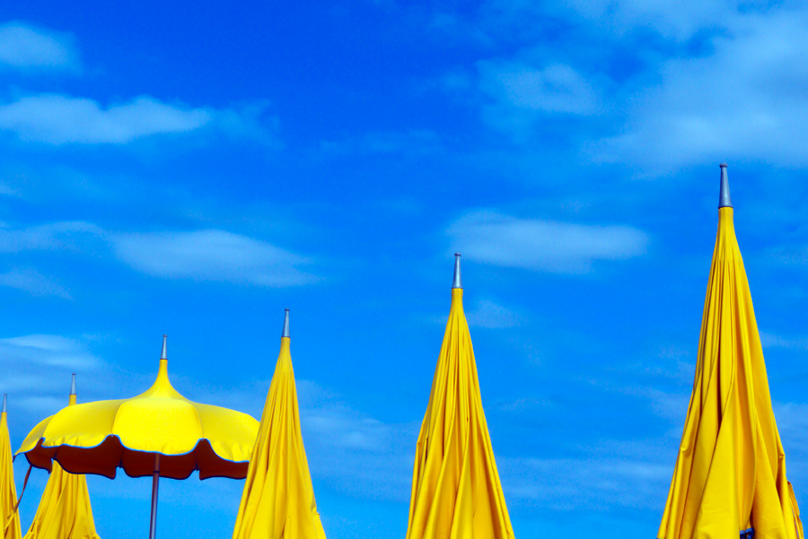 Grande scatto.. mi piace l'elemento che si ripete e l'ombrello aperto a far da contraltare. Un po' carica però.. la parte bianca delle nuvole si è tinta anch'essa di azzurro. _________________ - Fotografo della domenica |
