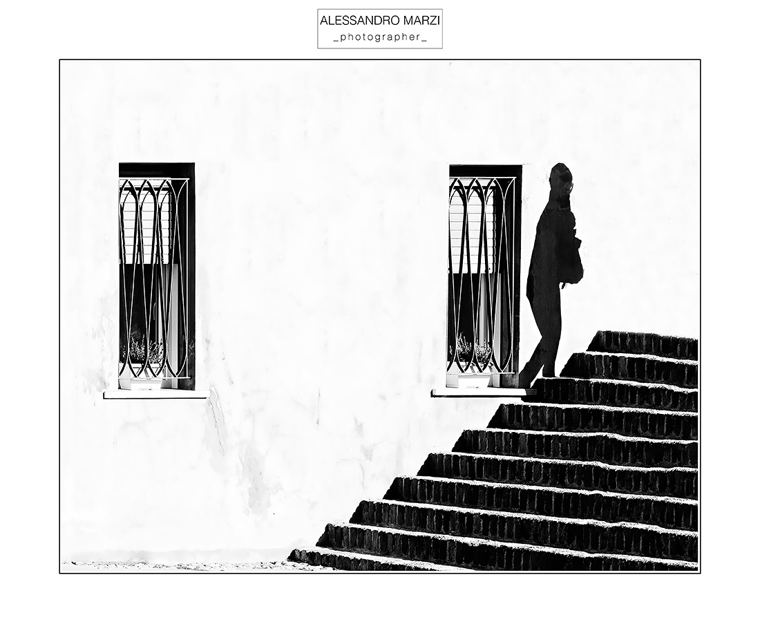 Questa immagine nasce da uno scatto affrettato fatto senza pensare a cosa volere. poi riguardandoci .. in tutti gli sbagli in fase di scatto c'era però quell'ombra che mi garbava molto. Ho tagliato, raddrizzato le linee e clonato varie cosette. eliminando la signora, l'ombra appariva troppo schiacciata al margine destro. Ho quindi sperimentato ad allargare la foto dandoci dentro con clone e riempi in base al contenuto.
