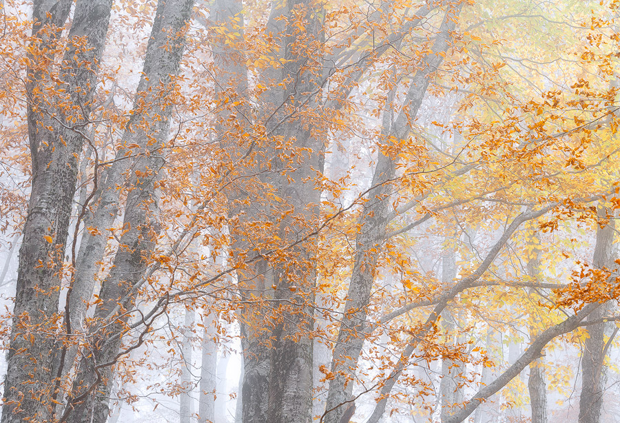Varie sfumature di giallo verde per il fogliame e tanta delicatezza nella tavolozza di sfondo che hai saputo restituire.