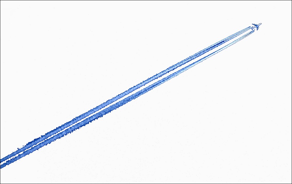 Dalla tonalità direi che l' aereo era carico ad inchiostro Watermann blu Florida, o Hermin Eclat de saphir ( va beh, io sono appassionata di penne stilografiche e non ho resistito) .