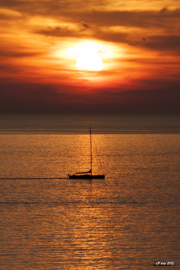Una barca all'orizzonte durante un tramonto (Sestri Levante).