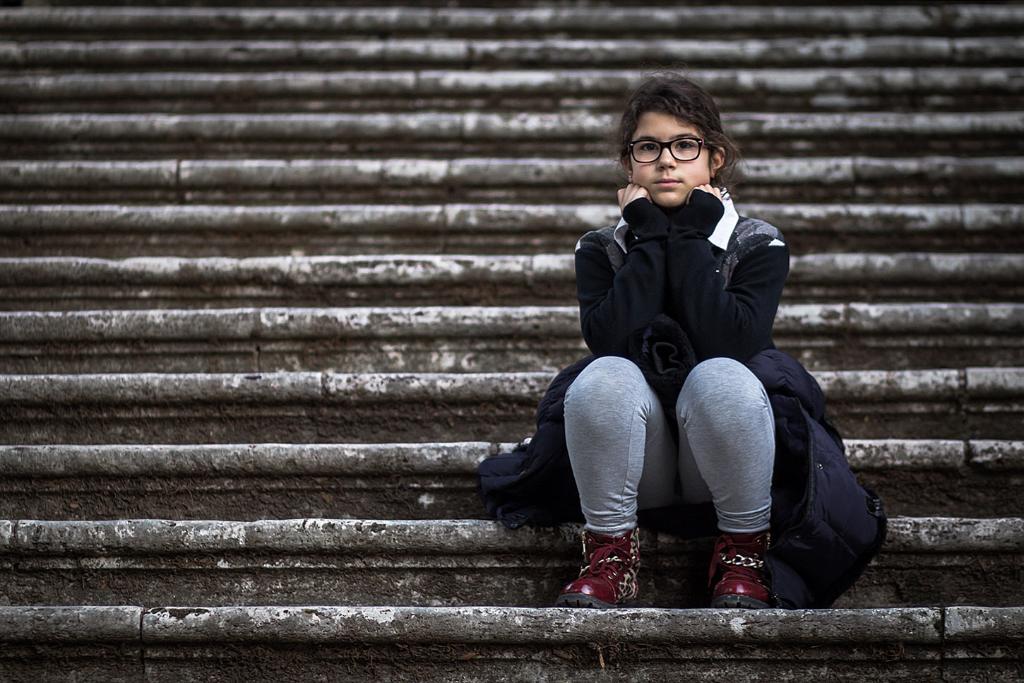 il titolo cosi' verte sul vero soggetto della foto, questa bella bimba, concentrata e silenziosa...che ci siano le scale e' un dettaglio, ben riprese si, ma il soggetto proprietario del titolo e' un altro.
