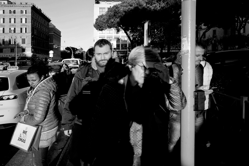 Scena e momento colto mi piacciono ma (a mio avviso) la composizione è migliorabile. L' uomo con sguardo in camera se portato a sinistra tagliando via signora di colore con borsa, guadagnerebbe in visibilità eliminando un forte elemento di distrazione.