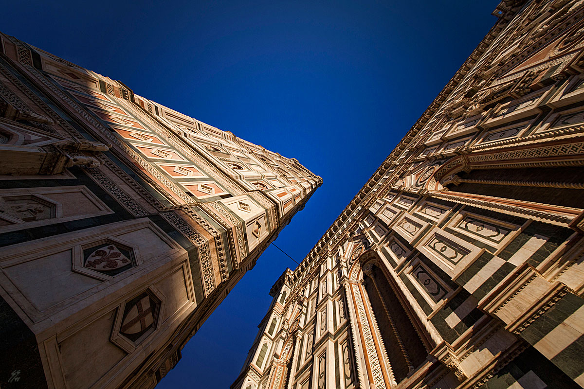 i colori reali sono quelli che ho rappresentato trattandosi di scatto alle prime luci dell'alba, si nota infatti il taglio dell'ombra sul campanile di giotto dato dagli edifici distanti, poi ovviamente con i programmi di fotoritocco si può aggiustare la temperatura colore e raffreddare il tutto, a meno che nn lo si voglia fare in fase di scatto bilanciando il bianco..... per il taglio sono gusti, io sacrifico sempre mal volentieri i mm offerti dalla lente perché mi prefiggo come obiettivo una imm più grande possibile, inoltre la tua proposta seppur interessante la trovo sbilanciata a dx x il maggior peso dei volumi rappresentati(IMHO)