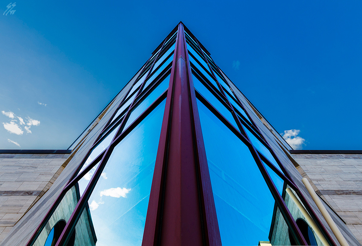 Dominante blu a parte ( Wink ) a me piace molto.. trovo buona l'idea di dare tanta importanza al cielo tenendo però nell'inquadratura tutta la struttura, quindi sfruttando a tuo vantaggio questa grande superficie riflettente.. Wink