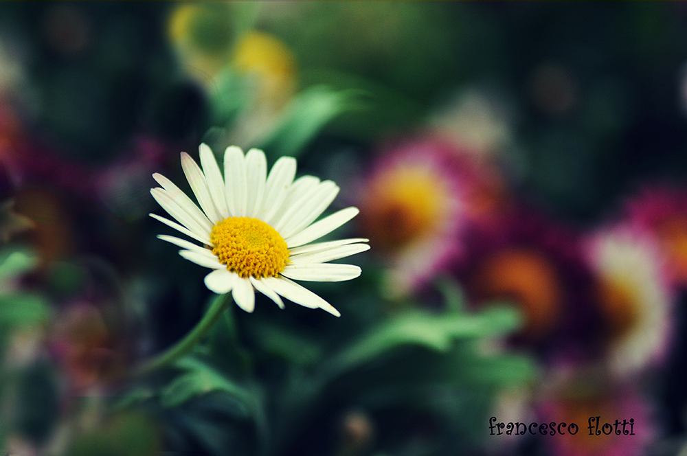 Buono il punto dove hai inserito il fior, buono anche lo sfocato, colori un po tendenti all'acido, mi piace, al bordo destro avrei rifilato di piu' per togliere quelle due macchioline bianche allungate...