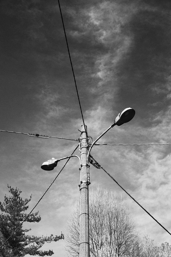 Essenziale nella divisione degli spazi del fotogramma. Questo palo stradale è ben legato da tutti i lati, bello solido.