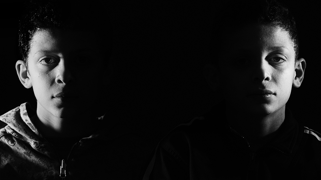 Non male come proposta. E' un ritratto che si lascia apprezzare nella sua particolarità poichè gioca molto sui chiaro scuri e ci lascia a noi la fantasia di unire questi due "complementari". Aumenterei un po' la nididezza generale ed aprirei più le ombre nella parte chiara (vedi capelli poco leggibili) mentre invece diminuirei di un filino la luce. Nel volto alla nostra sinistra invece la parte nera sulla fonte sconfina un po' troppo verso la parte chiara ed invece io la uniformerei e mi fermerei giusto a metà volto (così come in effetti hai fatto giustamente nel ritratto a dx). Un ulteriore prova potrebbe essere quella di mettere due espressioni opposte, quindi due stati umorali opposti.