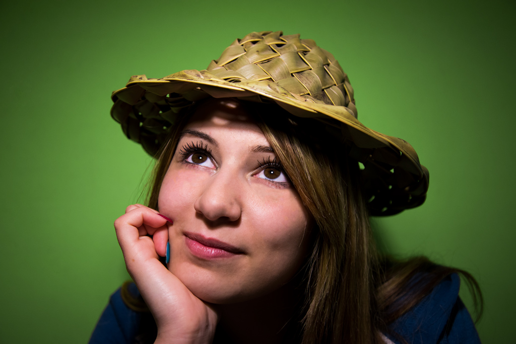 Se devo essere sincero, ho aperto questa foto perché sono stato attirato dal colore dello sfondo, piuttosto insolito. Solitamente si preferisce il bianco o il nero, ma devo dire che il verde fa risaltare anch'esso l'incarnato.