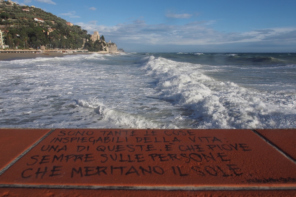 In effetti anche io avevo pensato alla giornata di pioggia (su quel molo - che si trova a Finale Ligure- ne ho qualcuna fatta con il mal tempo; ma la scritta con la pioggia non so se risulterebbe così visibile Smile