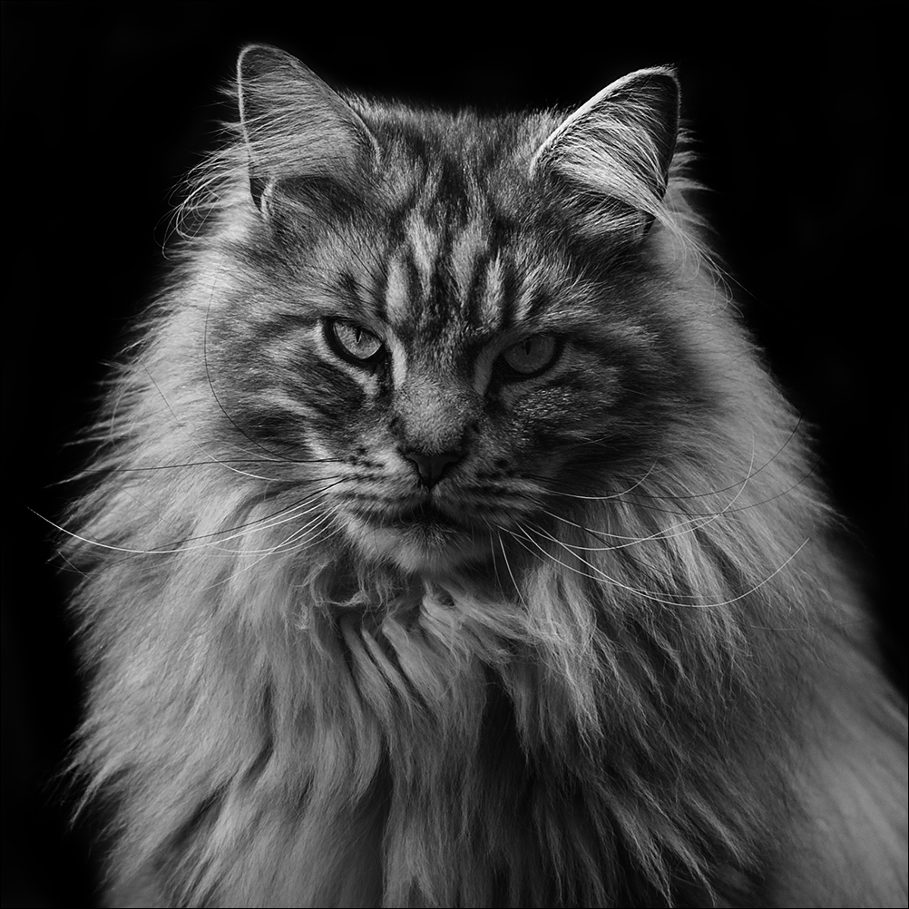Che sfumature sontuose in questo bianco e nero e che piglio per il tuo modello! La tua famiglia felina no finisce mai di stupirmi. Davvero un ottimo ritratto.