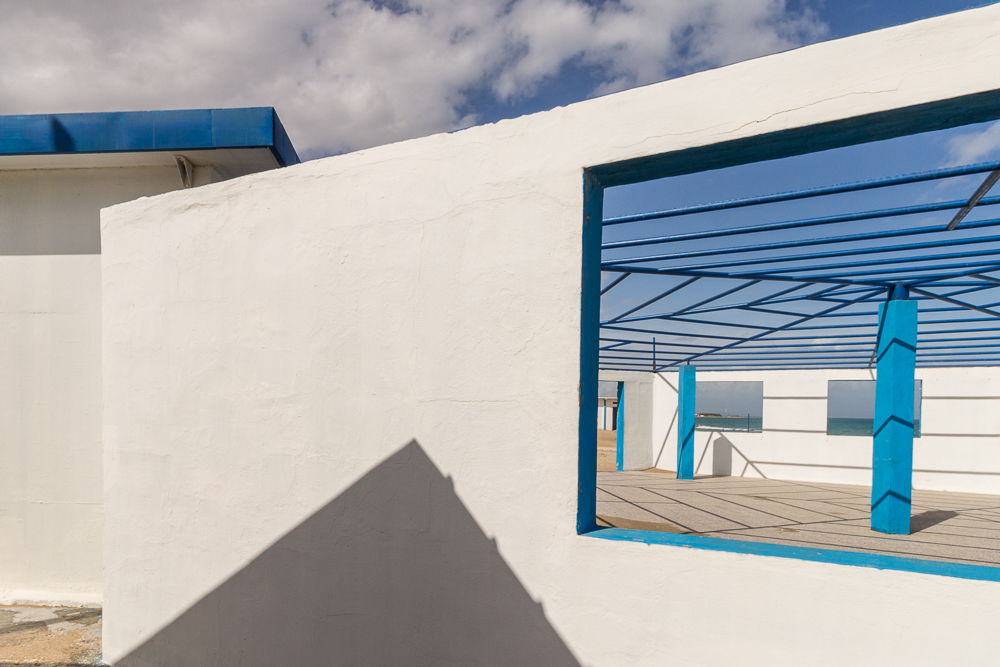 Bellissimi i colori pastello e l'azzurro dell'impalcatura che richiama il cielo Mi piacciono anche quelle piccole lacerazioni sui pali dovuti alla salsedine e che fanno sentire il profumo dell'acqua marina. Concordo con Giovanni rispetto l'ombra ma la foto nel suo complesso si fa davvero apprezzare.