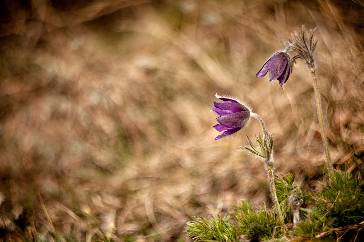 Magnifico bokeh che fa esaltare ancor più le due pulsatille.
