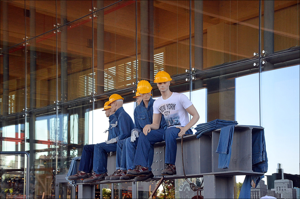 In verità, con la mia banale proposta, non intendevo emulare, nè accostare, se pur solo intenzionalmente, uno pseudo clone all'opera : Pranzo in cima ad un grattacielo.