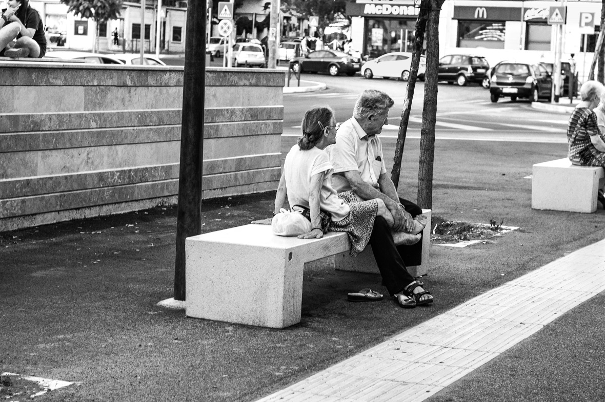 Guarda Bruno, posso garantirti che Filippo ha ben studiato l'argomento Street tanto da considerare quanto dettoti . Da parte mia non so, addirittura le basi per le street le vedo ma ripeto non faccio testo. La prima cosa che mi ha lasciato perplesso effettivamente sono state quelle due persone agli angoli del frame tagliate drasticamente , non so se per una street sia comunque corretto lasciarle ma di fatto rubano molto l'attenzione. Il momento colto lo trovo dolcissimo, quasi commovente ... è meraviglioso poter vedere dopo tanti anni magari di matrimonio una scena di questo tipo , un pò riconducibile alla loro , alla nostra adolescenza , quando seduti su una panchina avevamo la possibilità di viverci certe sensazioni molto personali e per le quali andare fieri. Il momento da te colto a me piace davvero molto , sarebbe stao il top se avessi immortalato in questa scena il loro sguardo complice guardandosi negli occhi . Sono un inguaribile romantico Muro