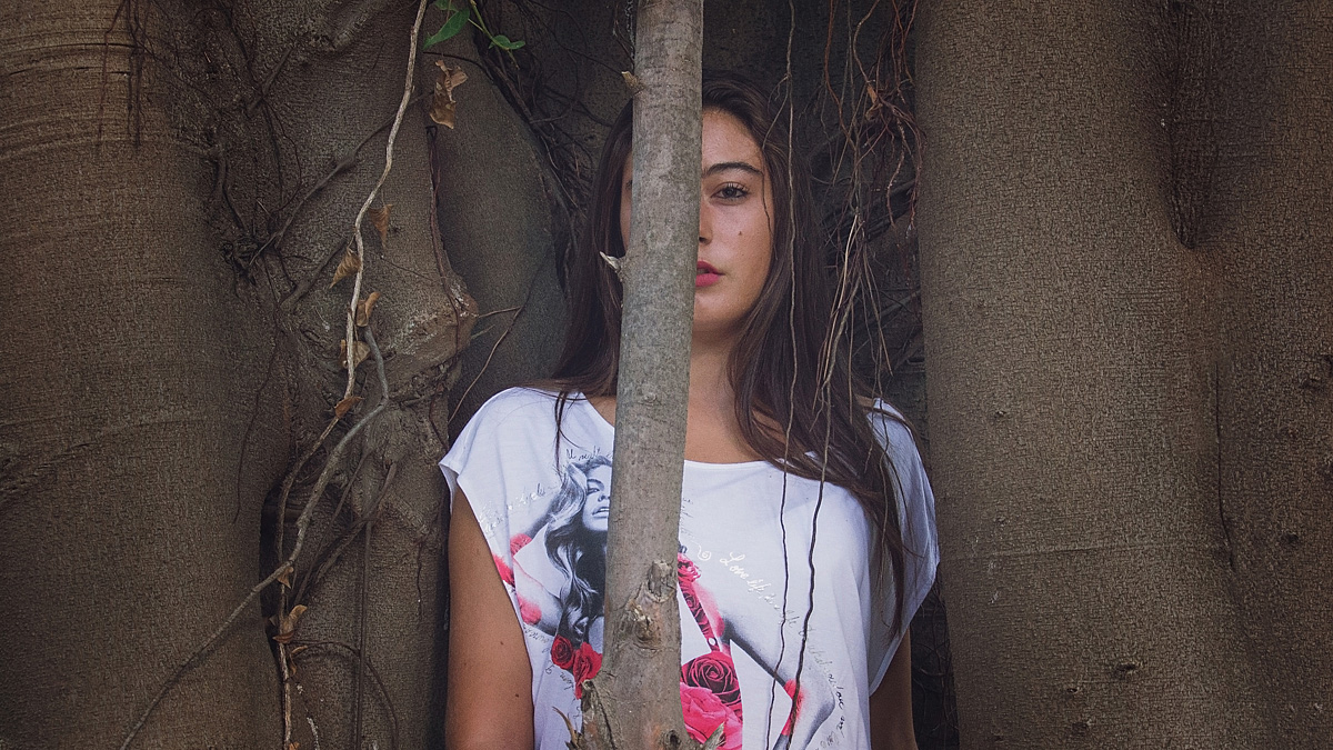 Poi ho capito, il volto sulla maglia e quello di lei, entrambi intersecati dal tronco.