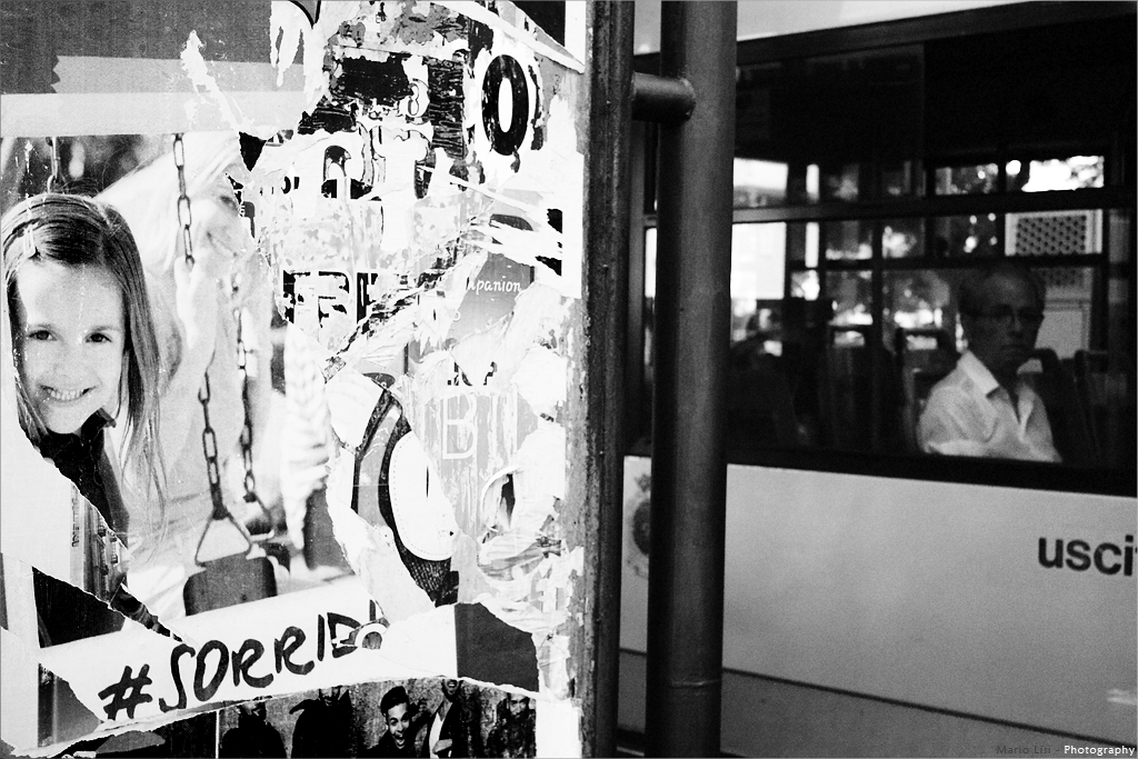 Mi piace molto, interessante il suggerimento del manifesto che, forse, la persona nel finestrino non riesce a leggere. Un saluto