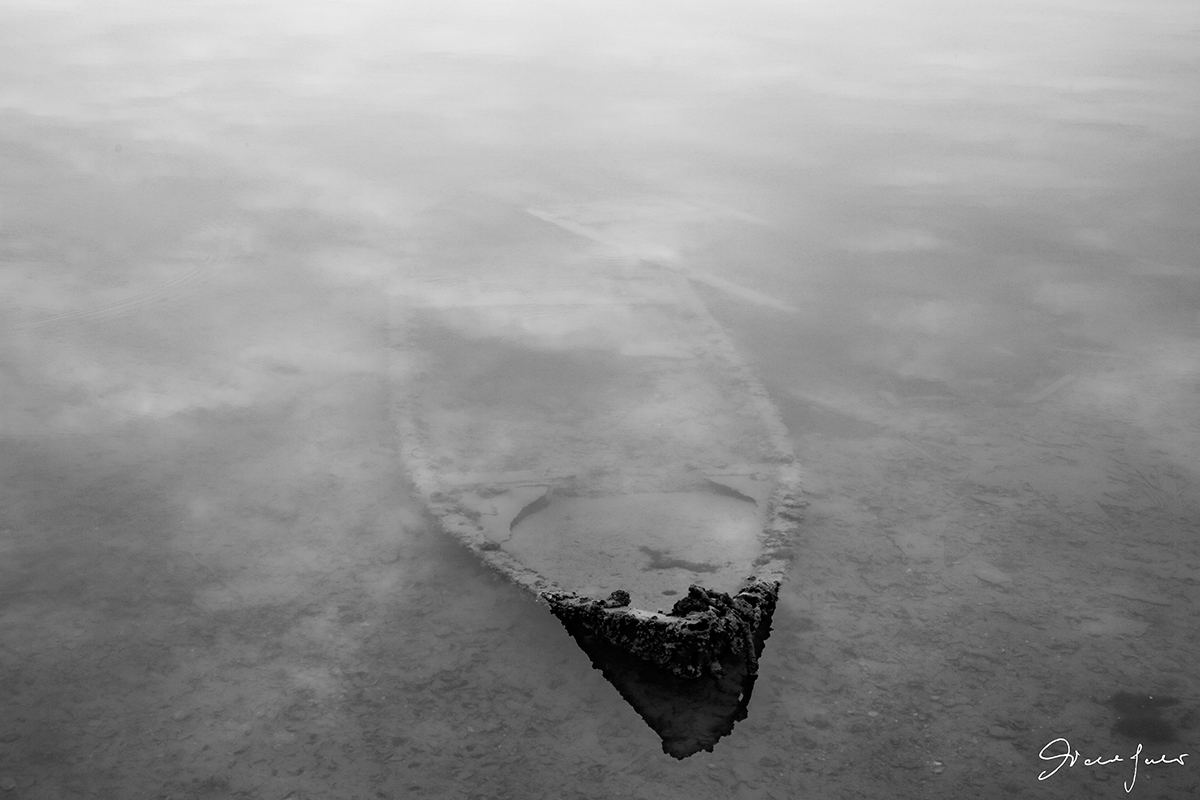Molto bella ed a tratti inquietante.Il relitto sembra emergere dalle nebbie di un incubo con la sua materica prua.Ottimo bn.Preferita!  _________________ Sergio Demitri https://www.flickr.com/photos/124946035@N02/ |