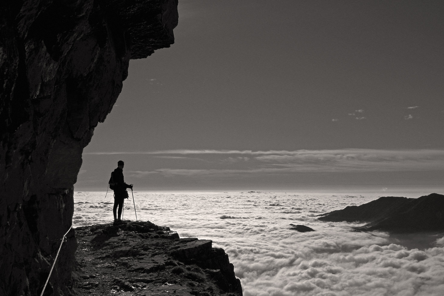 Sempre spettacolari queste immagini al di sopra delle nuvole,dalla miniatura mi sembrava veramente mare!Ottima composizione,bello anche il bn,forse una leggera apertura delle ombre più scure. Ok! Ciao