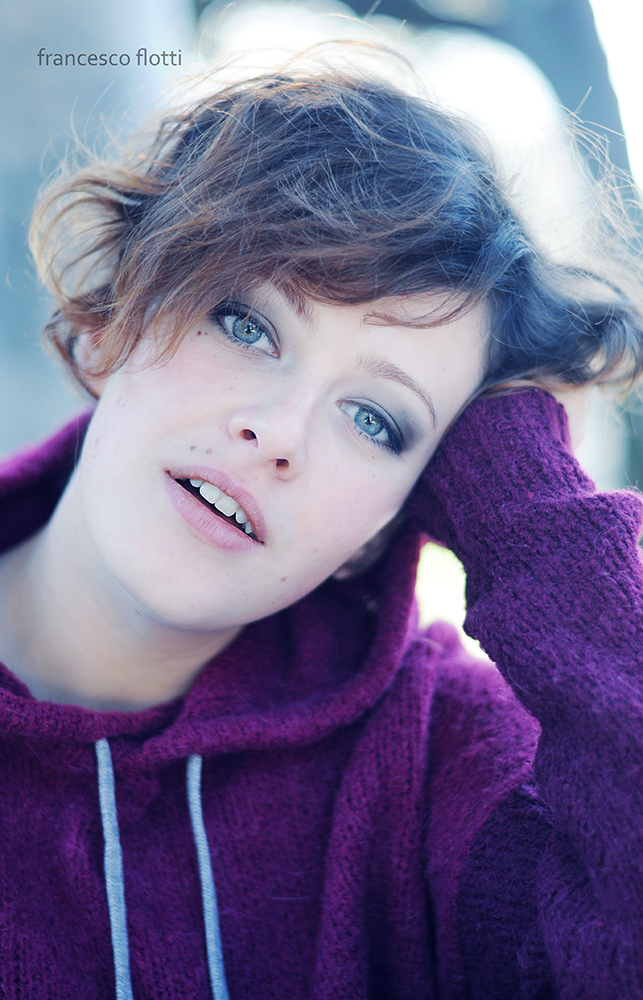 Espressione sognante, occhi genuini, labbra delicate. In questo caso hai usato tonalità fredde che non mi dispiacciono ma tu conoscendomi sai che io opto sempre per quelle calde .Quello spazio chiaro tra la spalla ed il polso lo avrei evitato  |