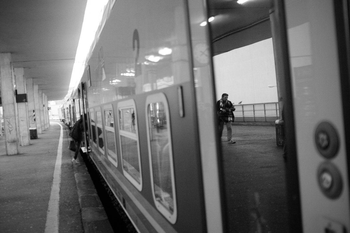 Bello il momento colto e il gioco del riflesso sul finestrino che ci spinge alla parte opposta dello scenario . La trovo un pò grigia Marco.