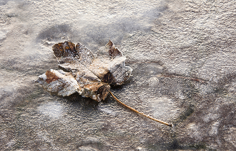 Una materia vegetale che lentamente si dissimula nel bianco, che affonda piano nel gelo. Ben trattato in dettaglio e colorazione. Molto bella e faccio finta...( si scherza...) di non vedere la versione con la modifica sfumata di photoshop.