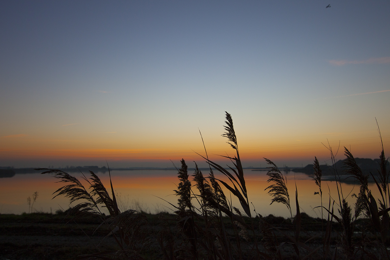 | Un classico di silhouette serale ben reso. Mi apice molto anche il titolo che hai dato.  Quando le ombre sono già dense e i colori  hanno le loro ultime accensioni giornaliere. Un filino di interferenza di troppo dei soli pennacchi che si sovrappongono alla linea lontana della costa in sfondo. Magari scattando, solo dopo aver fatto un piccolo passo a sinistra, si poteva evitare la sovrapposizione.