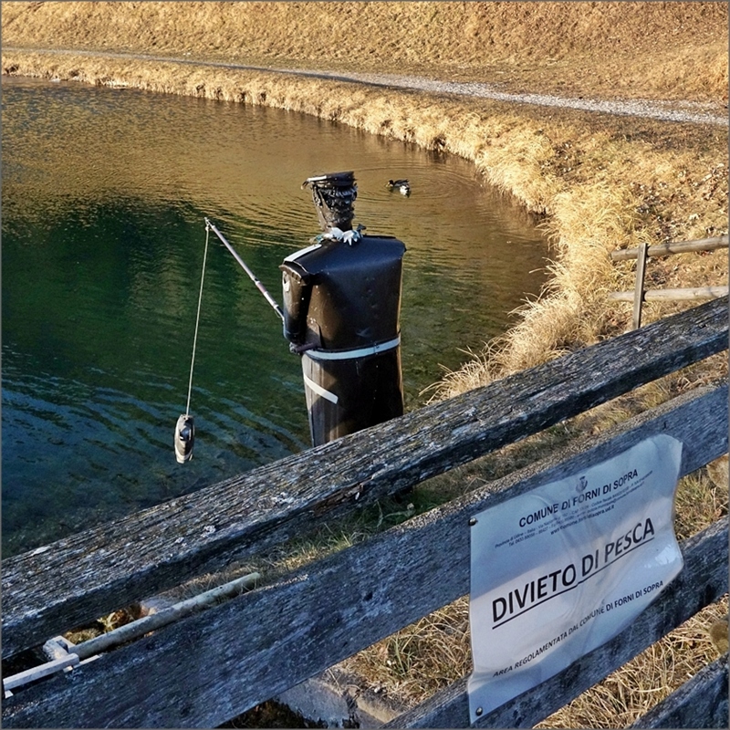 Mai visto uno spaventapescatori poi hai ben onserito nell'immagine anche il cartello di pesca vietata.