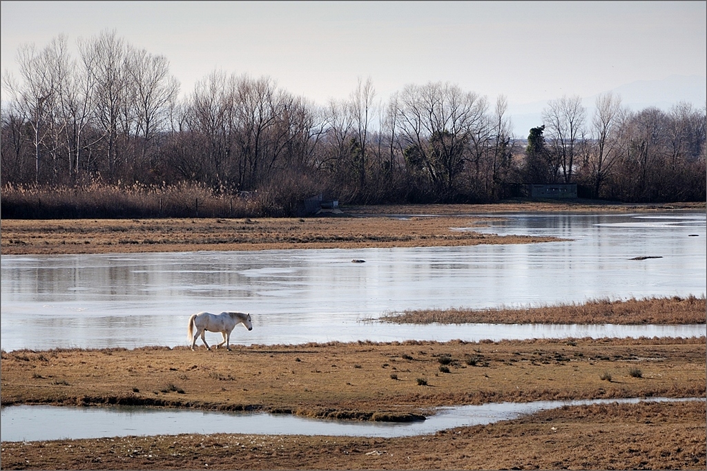 una foto che si fa guardare e ammirare...si respira pace serenità e silenzio, data anche dal passo lento e quasi malinconico del cavallo e dalla calma delle acque del fiume, belli i colori tenui di un inverno ormai consolidato e composizione azzeccatissima...complimenti Sergio