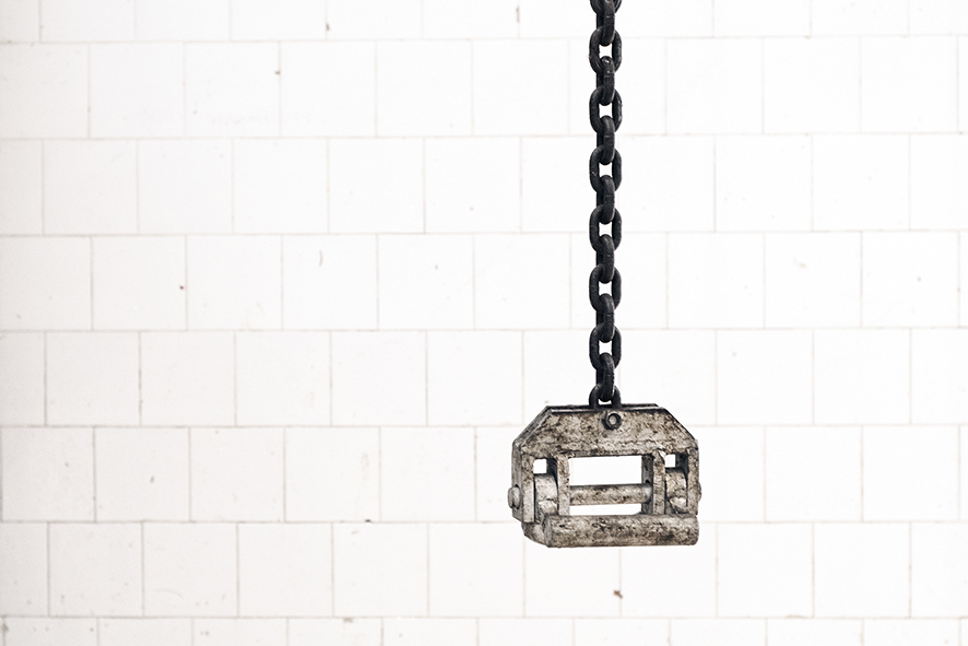 Morsetti e catene, punte uncinate e coltelli affilati, fino alla più esplicita arma ad aria compressa... un crescendo di armamentario in sequenza. Un uomo senza volto ( spesso l'orrore non ha nome nè colpevoli, ogni responsabilità finale entra in una lungo filare di eventi) maneggia tutti gli strumenti, mentre la catena di montaggio delle varie fasi, agevola i sui atti. Dalla 1 più minimalista di apertura, si passa all'affilamento coltelli della 6, ad una 8 che regge obliquamente un arto in tensione, alla 10 che in pudica lontananza mostra il lavoratore all'opera nel suo ambito.
