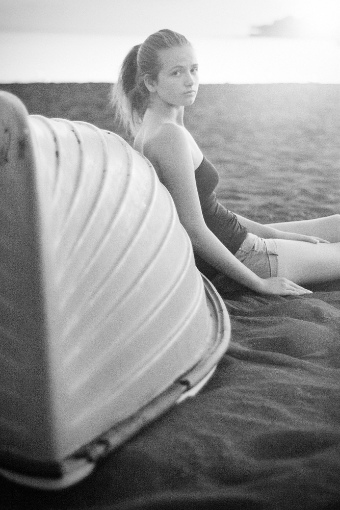 Hanno ben scritto: quasi atemporale questo ritratto pieno di delicatezza. Bella anche la espressione della giovane protagonista, sospesa, come a disagio, quasi come se il tuo scatto rubasse un istante, un attimo di turbamento pensoso. E l' appoggio alla barca, questo ampio elemento che in un certo senso ripara e separa la protagonista , rafforza questo senso dì intimità colta.
