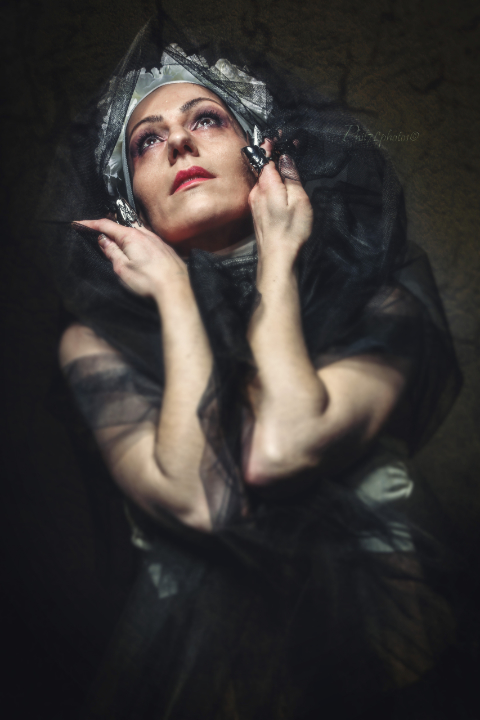 Teatralmente drammatica con la diversa saturazione fra arti e viso che la rende anche un po' inquietante e mistica.