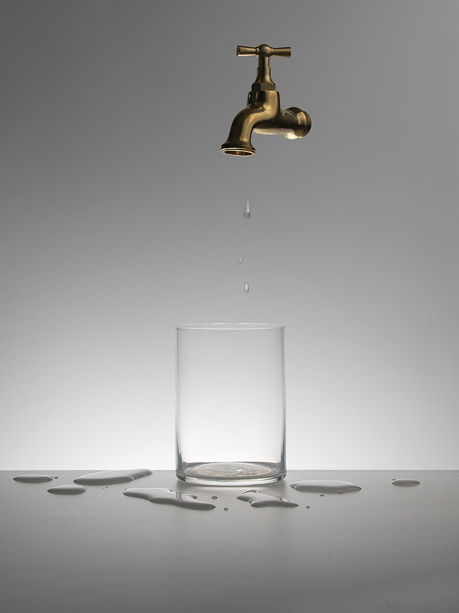 prendi, con una mano, un contagocce...ti posizioni sopra al bicchiere (e poco sopra al rubinetto)...con l'altra mano impugni il telecomando e scatti (a raffica)...