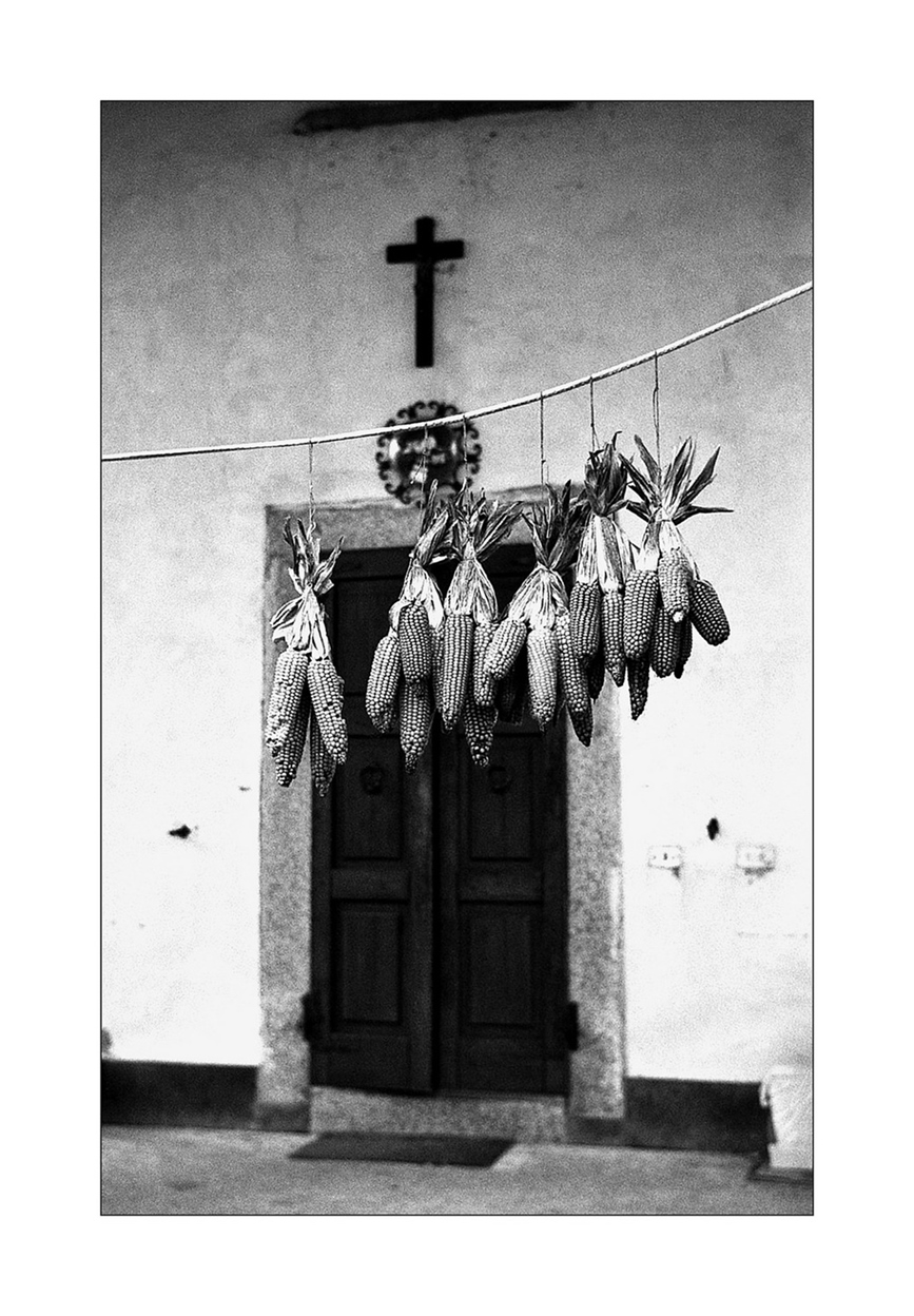 | Clara Ravaglia ha scritto: | Che bella questa fila di pannocchie in sospensione.. e la nera croce sul muro in sfondo che , nonostante faccia parte di uno sfocato comprimario, ha una grande e parte nella scena. Simboli di spiritualità e altri di fertilità della terra, e di quotidiano, che si mescolano con belle efficacia.