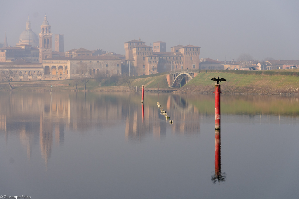 Le architetture sono quelle riconoscibili di Mantova, ma il mood della scena, il suo carattere come velato... mi ha ricordato certa paesaggistica che ho visto in alcuni scenari indiani, fatta la debita differenza fra i profili in lontananza e gli stili in gioco ..