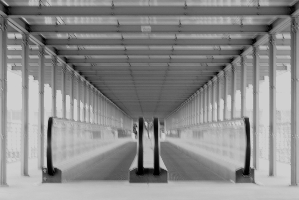 Taglio e composizione molto precisi a fronte di un mosso che,proprio per contrapposizione,crea una senzazione di disorientamento e di ipnotico trascinamento attraverso le linee di fuga sospinti e respinti dagli opposti tapis-roulants.Molto suggestiva!  _________________ Sergio Demitri https://www.flickr.com/photos/124946035@N02/ |