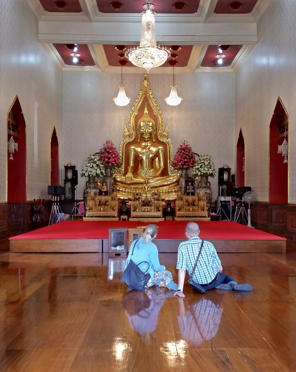 Un riflesso di una lampada sul pavimento lucido, va a sovrapporsi con la testa dell'uomo, si potrebbe parlare di una ''illuminazione'' spirituale.