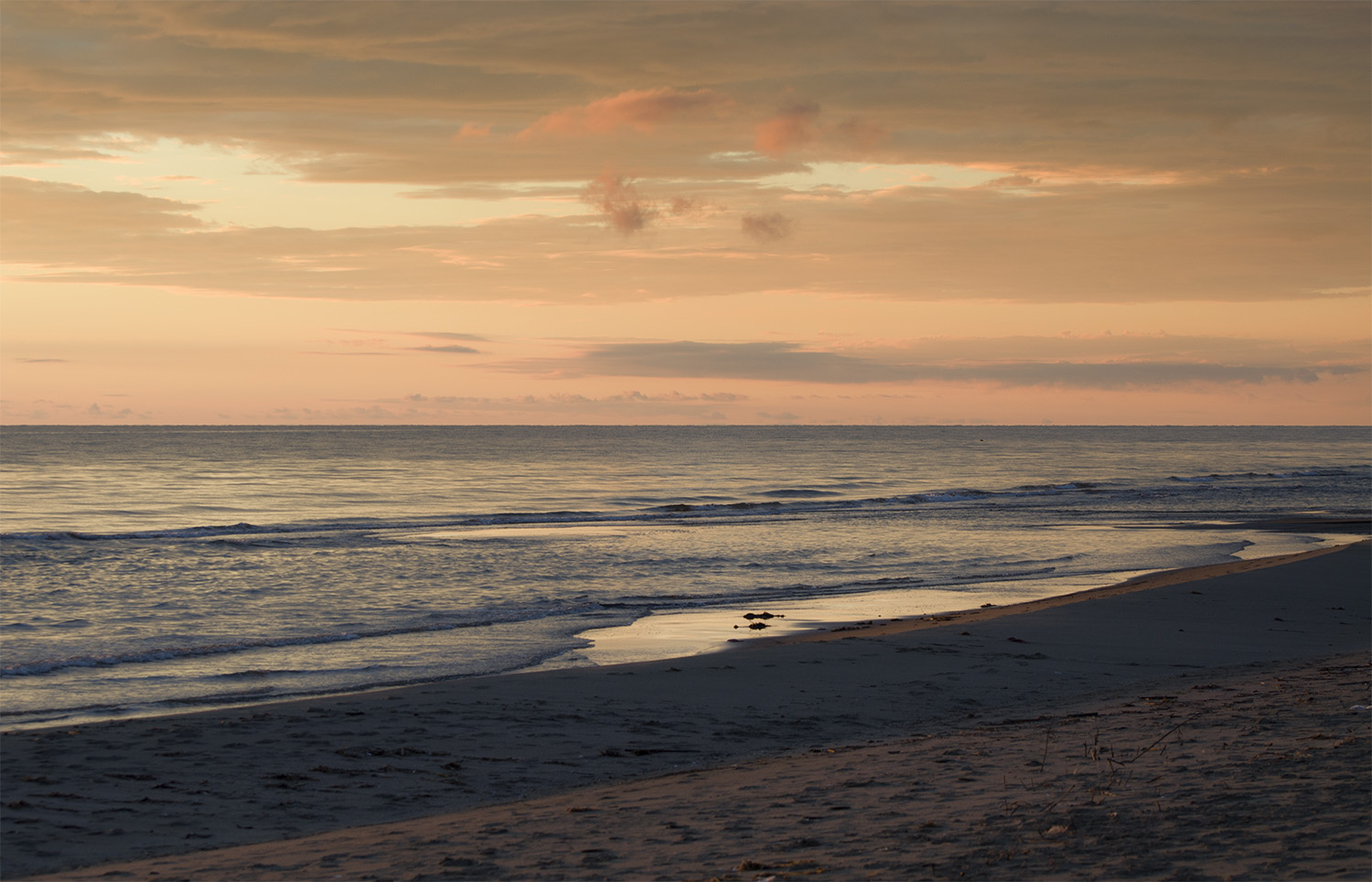 estremamente bella e delicata. Hai beccato e reso una gran bella luce. Quelle poche nuvole rosate in posizione centrale calamitano l'attenzione. Per me tra le tue migliori