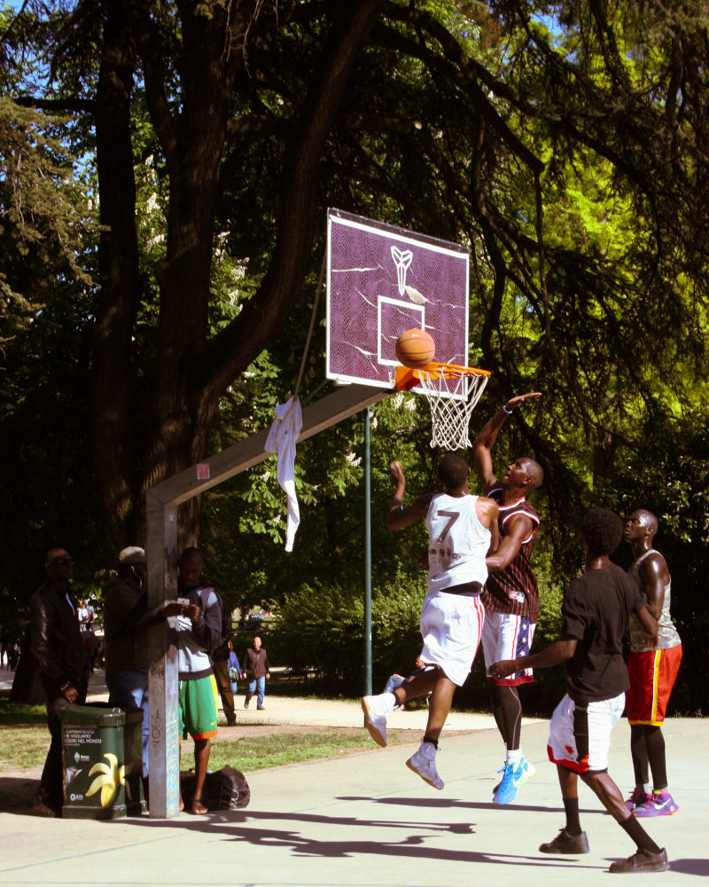 | Non fosse per il bidone della spazzatura la si potrebbe collocare geograficamente oltreoceano. Come hai scritto colta al volo e come tale ben colta. C'è chi va a canestro ed altri che vanno per altri lidi. Un pò scura la parte in ombra ma nel complesso la luce è naturale e veritiera.