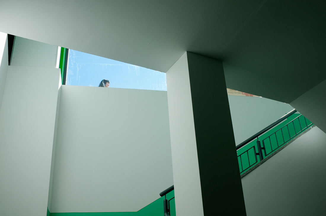 Belli i colori e le geometrie, mi piace anche la dominante verdina dei muri.