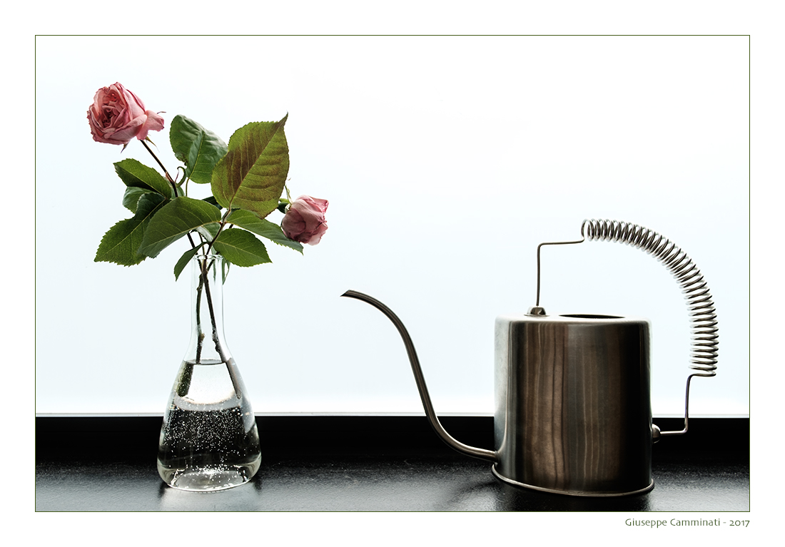 Immagine molto elegante e pulita,ottimi i colori e la composizione che si sviluppa sulla diagonale rose-becco del recipiente,bella gestione della luce.  _________________ Sergio Demitri https://www.flickr.com/photos/124946035@N02/ |