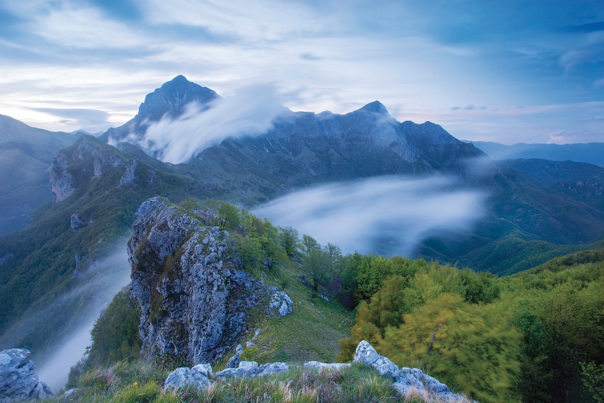 Una piccola correzione alla dominante, può migliorare ancora la visione di queste Apuane, fra nuvole soffici e mosso ventoso sul verde. Davvero ben vista e composta.
