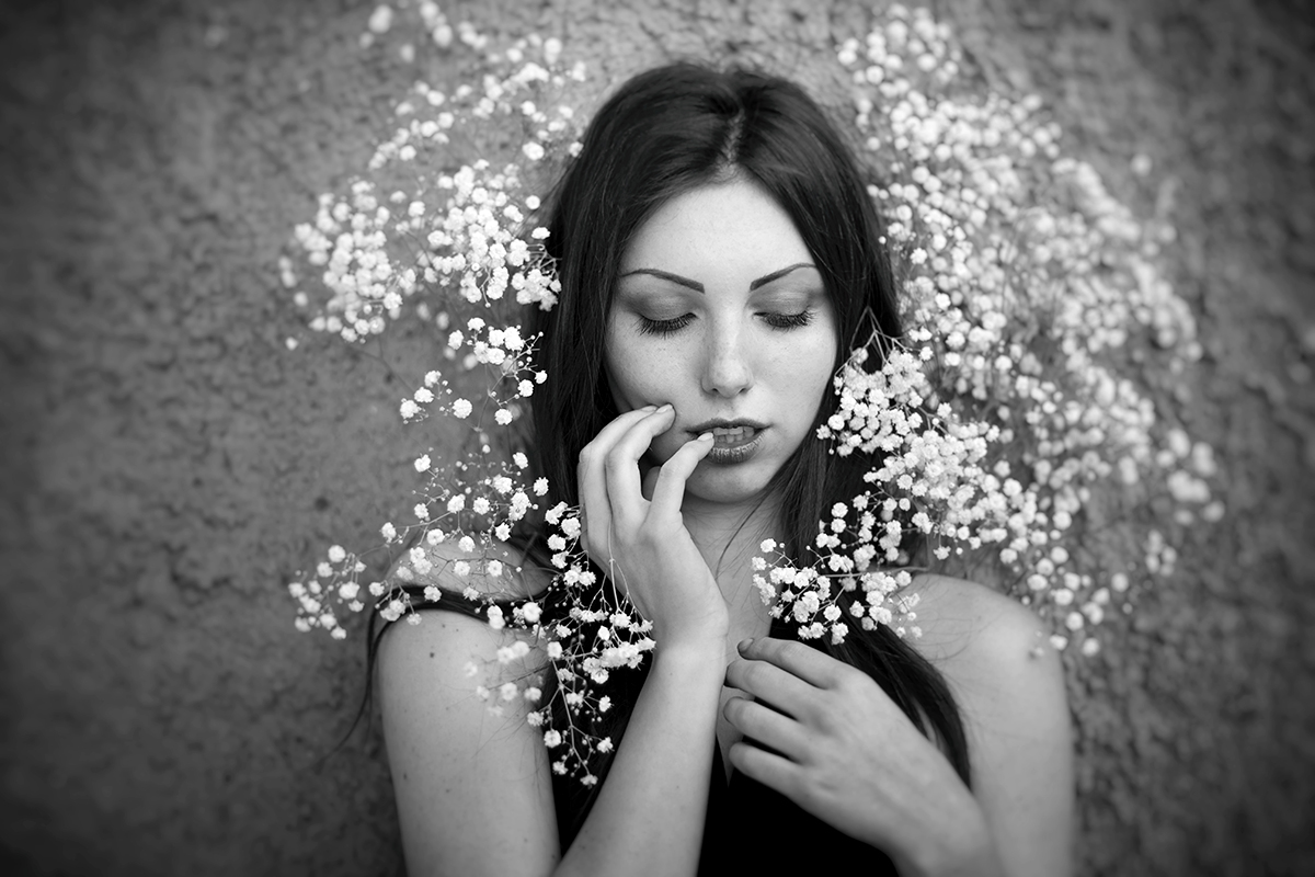 Vignettatura, posa, lineamenti e quella nuvola di fiori mi hanno fatto pensare ad una Madonna moderna.