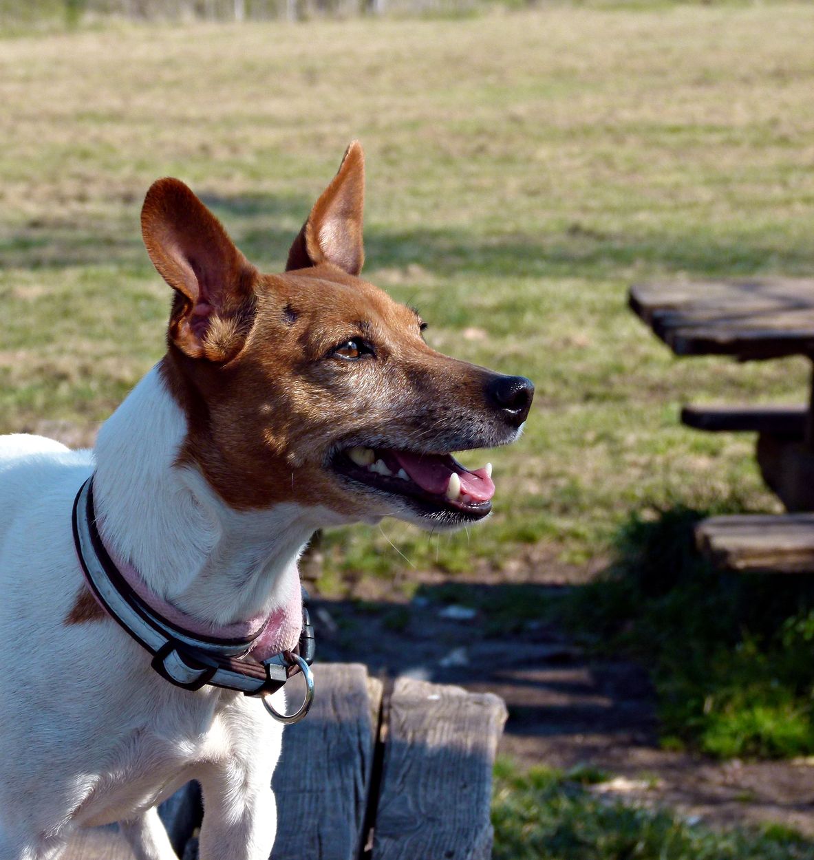 L'espressione del cucciolo è bellissima ma... un po' drastico il taglio del soggetto e ci sono degli elementi di disturbo che distraggono e impallano il cagnolino.