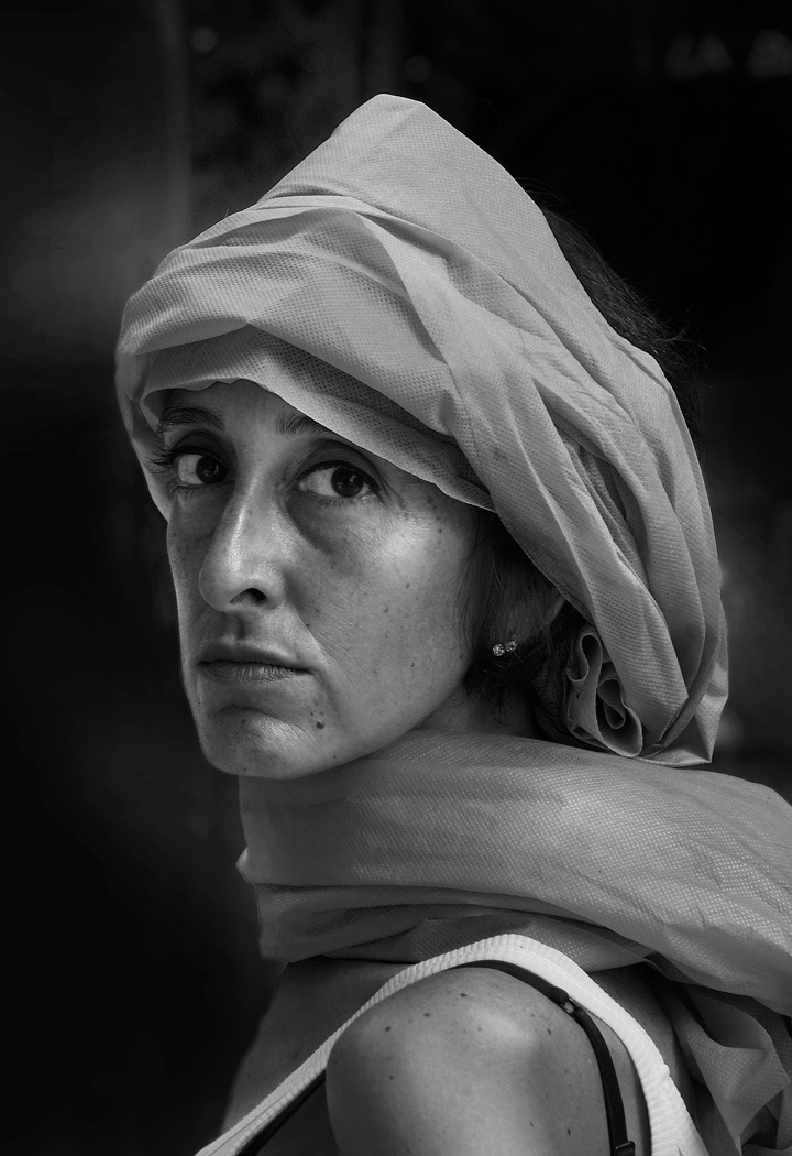 Serena..... ma volitiva, afferrata nel preciso istante in cui un moto di meraviglia volge il viso e si trasforma in espressione ferma. Qui mancano i colori, l'orecchino poi non è di perla, ma c'è...