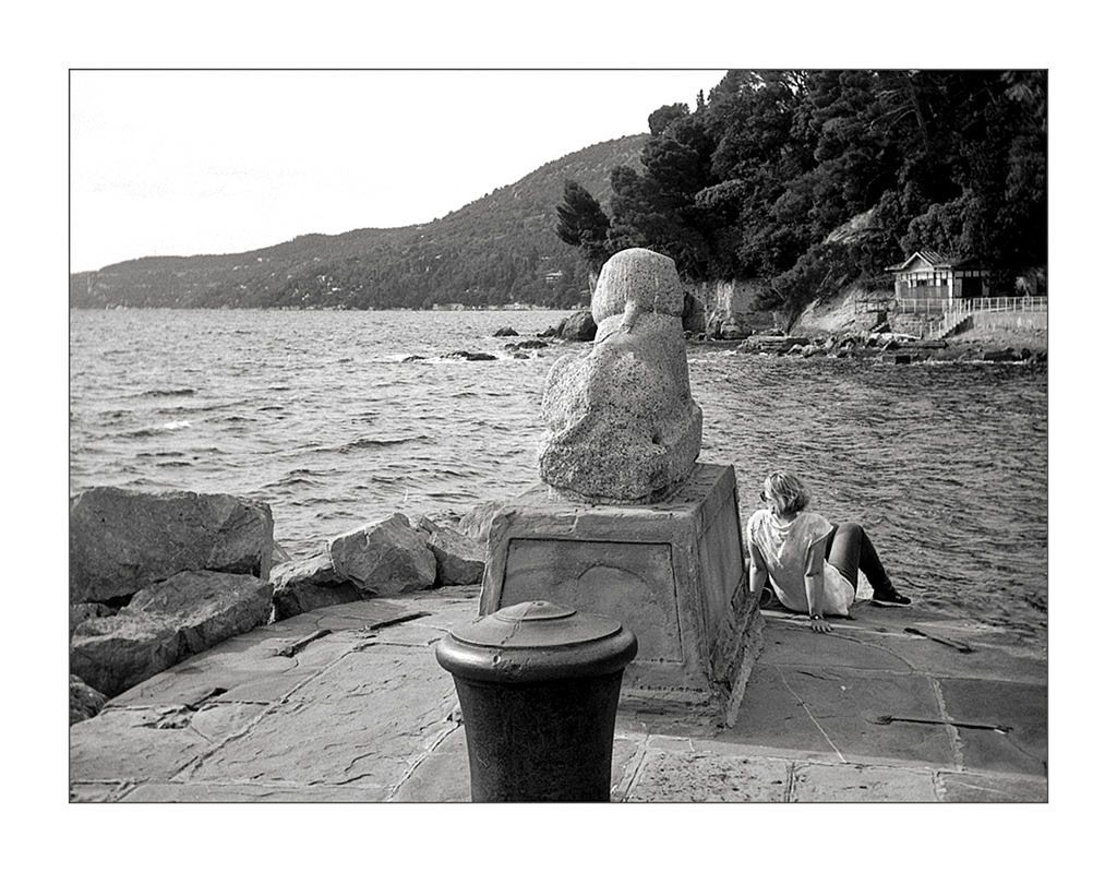 Antica e granitica l'una, morbida e reale l'altra, sfingi entrambe rivolte al mare, col loro vissuto.