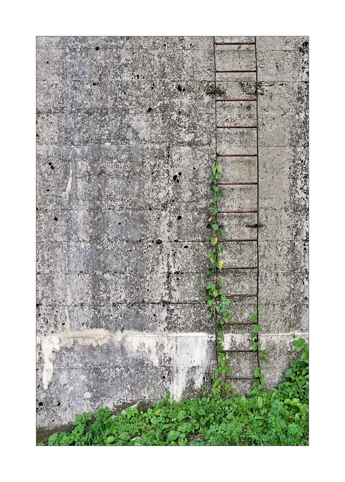 Questa esce dal coro, la sento più tua perché interpreta quell'abbandono in chiave personale, hai voluto darle quella minimalità che però dice tutto, c'è davvero tutto quel discorso in questa semplice scala in ferro che piano piano è scalata dal rampicante che in fondo ingentilisce quel manufatto, ragionando per iperbole l'uomo ha soggiogato la natura ma mai fino in fondo.